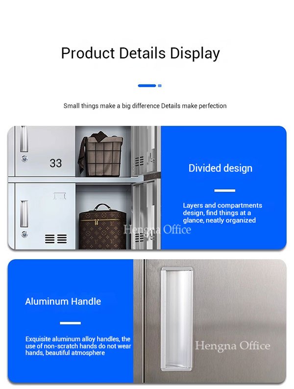 Lockers take more abuse than almost anything else in a school building. Students slam them shut between classes. Backpacks with heavy textbooks get shoved in and yanked out. Gym clothes sit inside all day. In humid climates, cheaper lockers start rusting before the first semester ends.This 18-compartment steel school locker is built differently. The body is constructed from 201 stainless steel — not coated steel that chips and rusts, not plastic that cracks under pressure. Each of the 18 doors has its own keyed lock, a ventilation system that keeps contents from getting musty, and a name card slot so students can find their locker without confusion.